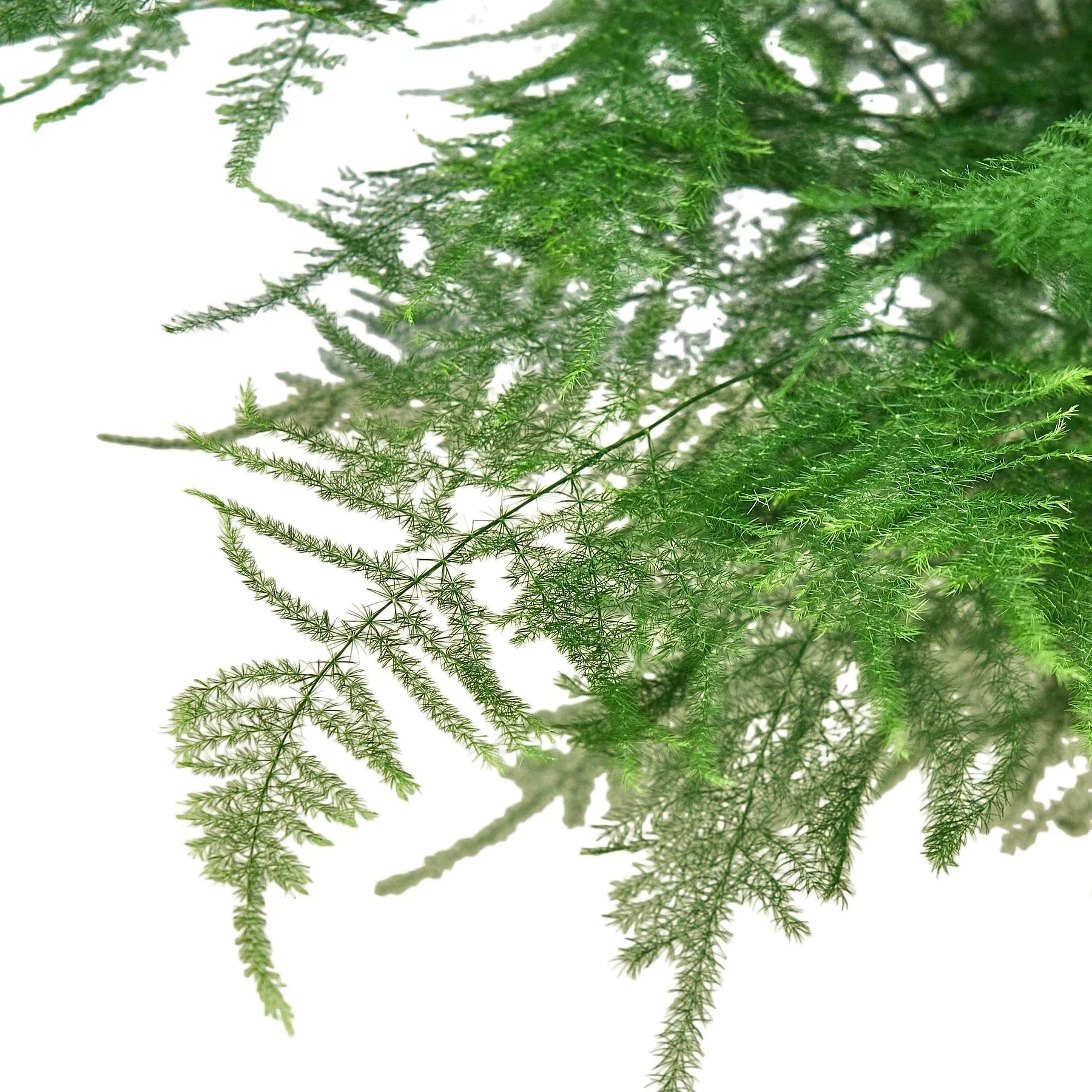 Description: The asparagus fern plant is not really a fern at all, but a member of the Liliaceae family, making it a relative of lilies and tulips. However, care is similar to most ferns. When growing asparagus ferns inside, place them near places with humidity and indirect light. Mist regularly. Its lush and frilly foliage makes it appear soft and fuzzy, but beware that there are thorny spurs. It's toxic to humans and animals, and is commonly placed in hanging displays.