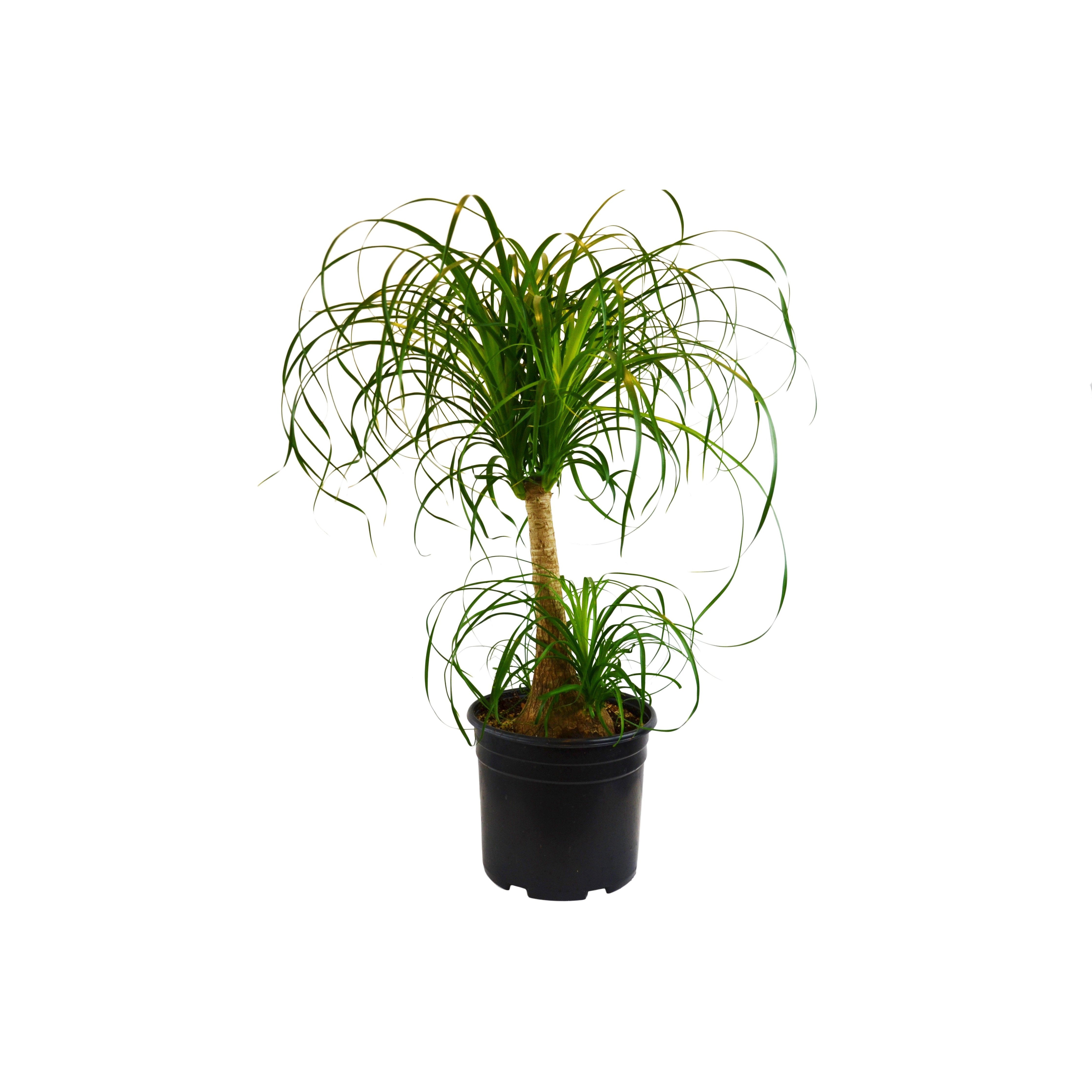 - Description: The ponytail palm is an evergreen perennial native to Eastern Mexico. It has become an ornamental plant due to its ability to thrive indoors and retains water through its swollen trunk. Much like a palm tree this plant can grow to be 30 feet tall in its maturity.